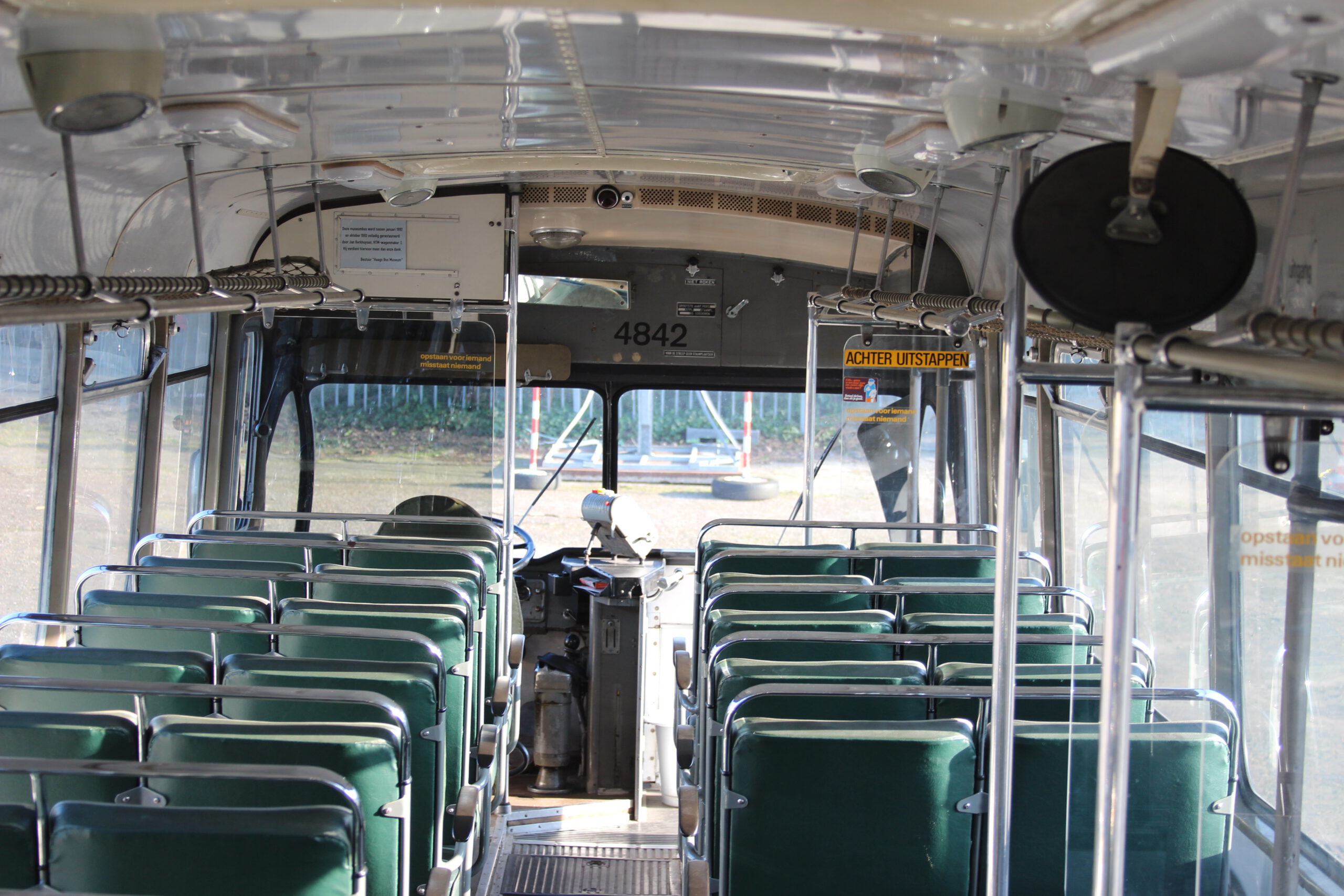 Vertegenwoordiger van het grote aantal zgn. “Bolramers” dat vanaf de tweede helft van de vijftiger jaren bij de NZH in dienst kwam ter vervanging van de resterende NZH-tramlijnen (blauwe tram). De bus is in 1969 door NZH verkocht aan Van Gog. In 1974 kwam de bus bij Westnederland terecht waar deze ijzersterke Leyland A-Road tot maar liefst 1981 dienst heeft gedaan en in totaal ruim 2 miljoen kilometer gereden! De 4842 werd door het HBM aangekocht op 11 juni 1981. Op eigen kracht is de bus hierna naar Gouda gereden waar we tijdelijk bij British Leyland mochten stallen. Van september 1981 tot juni 1989 genoot de 4842 gastvrij onder-dak bij de BBA te Oud Gastel. Op 10 juni 1989 is de 4842 naar de Den Haag gehaald en diende in het Haags Openbaar Vervoer Museum een tijdje als voorbeeld van hoe erg een bus verrot kan zijn. De carrosserierevisie ving aan in 1991 en duurde tot 1995. Vrijwel alles aan de carrosserie moest worden vernieuwd. Hierna werd de bus in fases technisch onder handen genomen. In juli 2000 liep de bejaarde Leyland O600 motor echter vast zodat een totale motorrevisie onontkoombaar was. De grijze NZH 4842 is door de gemeente Den Haag aangewezen als roerend monument.