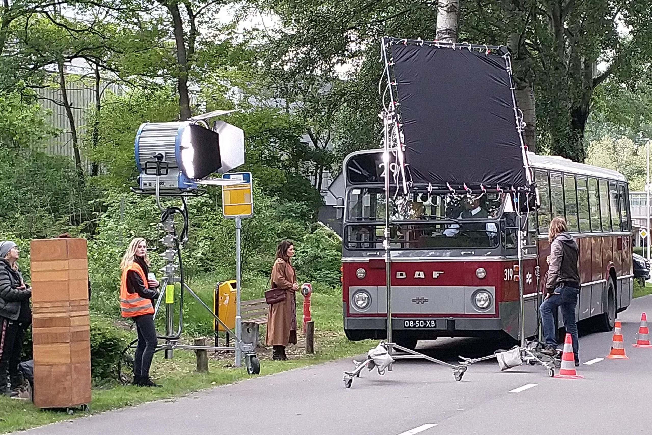 Bus HTM-319 tijdens opnamen voor ‘Dit zijn wij’ van de NPO in Amsterdam